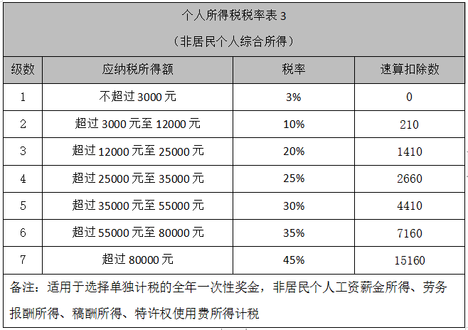 2. 非居民个人减免税额计算