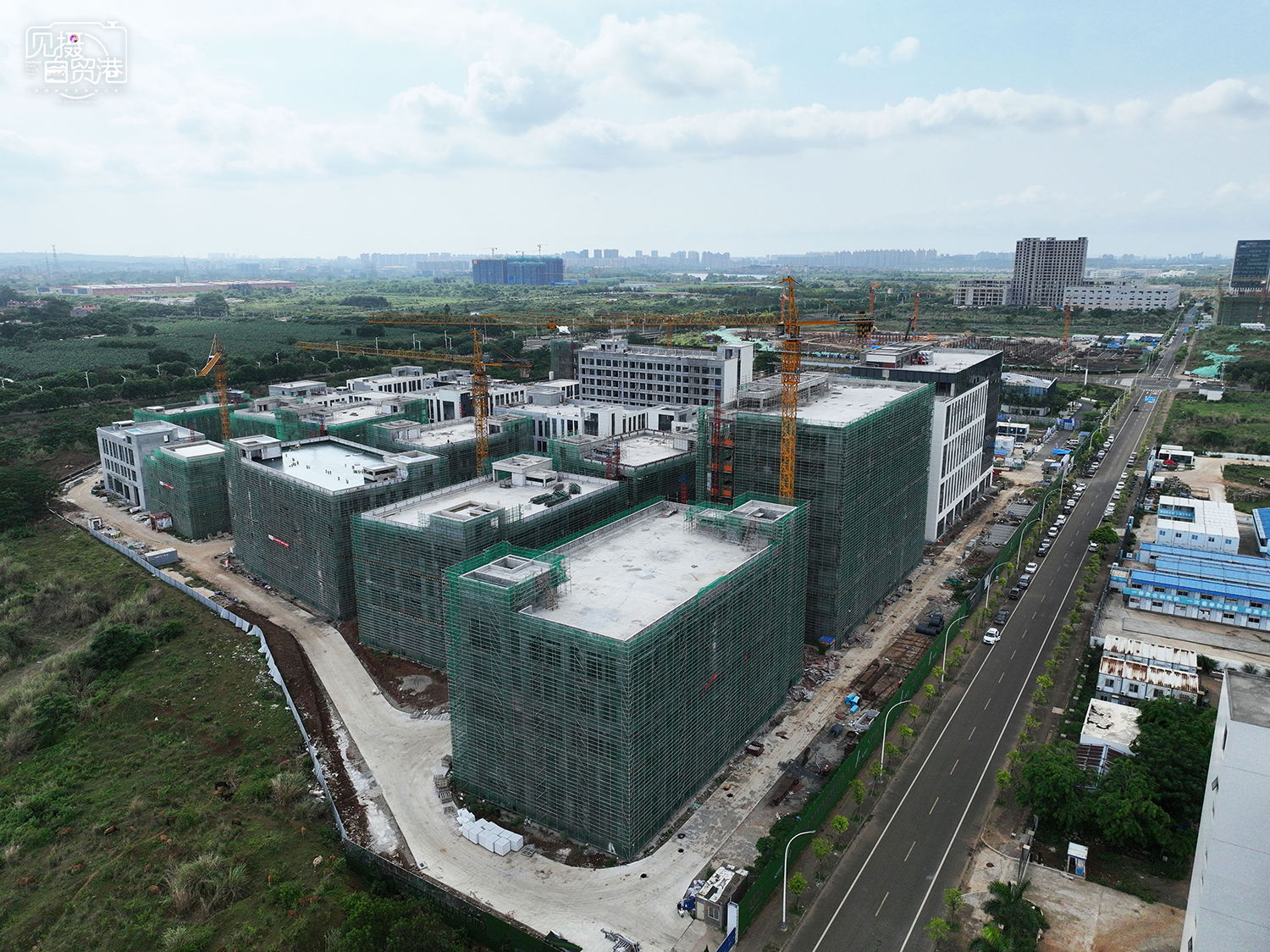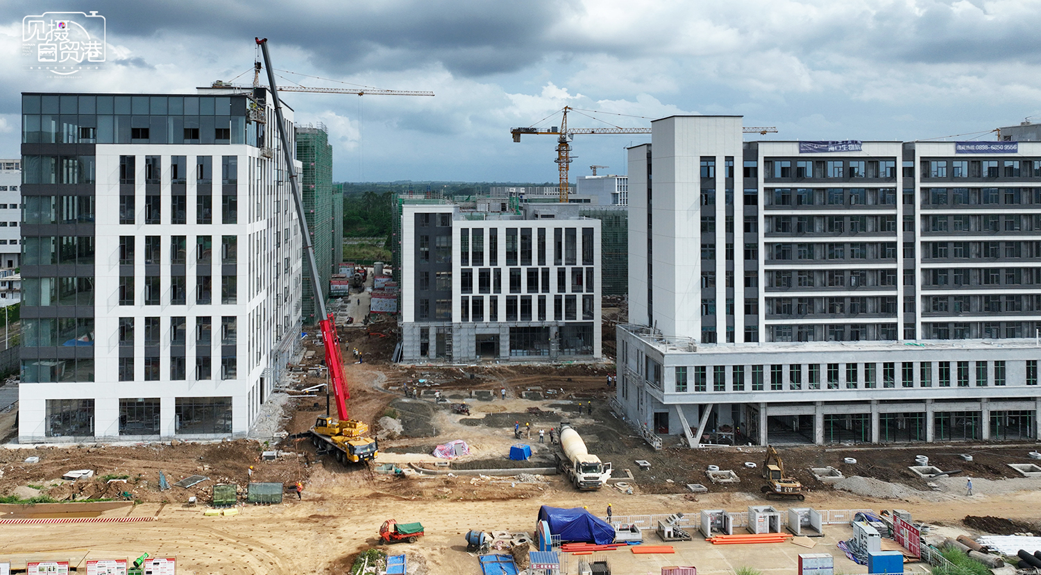 5月15日,位于美安大道的东湖高新海口生物城项目工地,工人们正在忙碌施工。